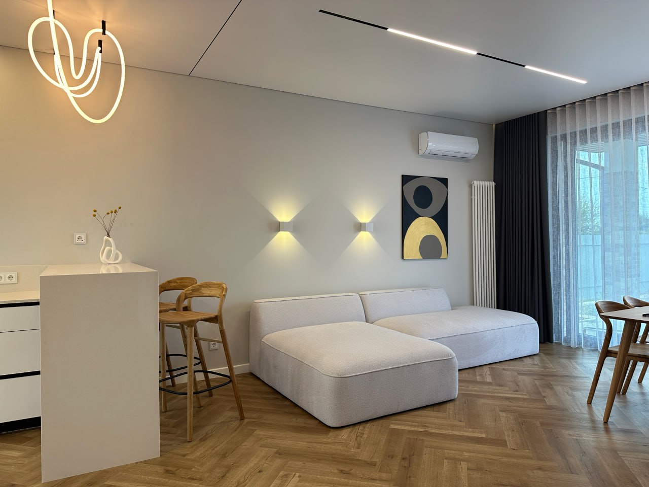 Полы - очень важная часть ремонта, особенно если укладывать полы в один контур с кухней и прихожей. Именно поэтому я выбрал кварц винил, ведь он не боится воды и стойкий к механическим повреждениям. Так же кварцвинил не сильно подвержен тепловым расширениям, а это важно если укладывать в один контур (у нас 76 кв. м) Мы долго выбирали среди многих вариантов и решили выбрать бренд Fargo - цена/качество и подходящий цвет. Линейка комфорт, цвет Дуб Марракеш.