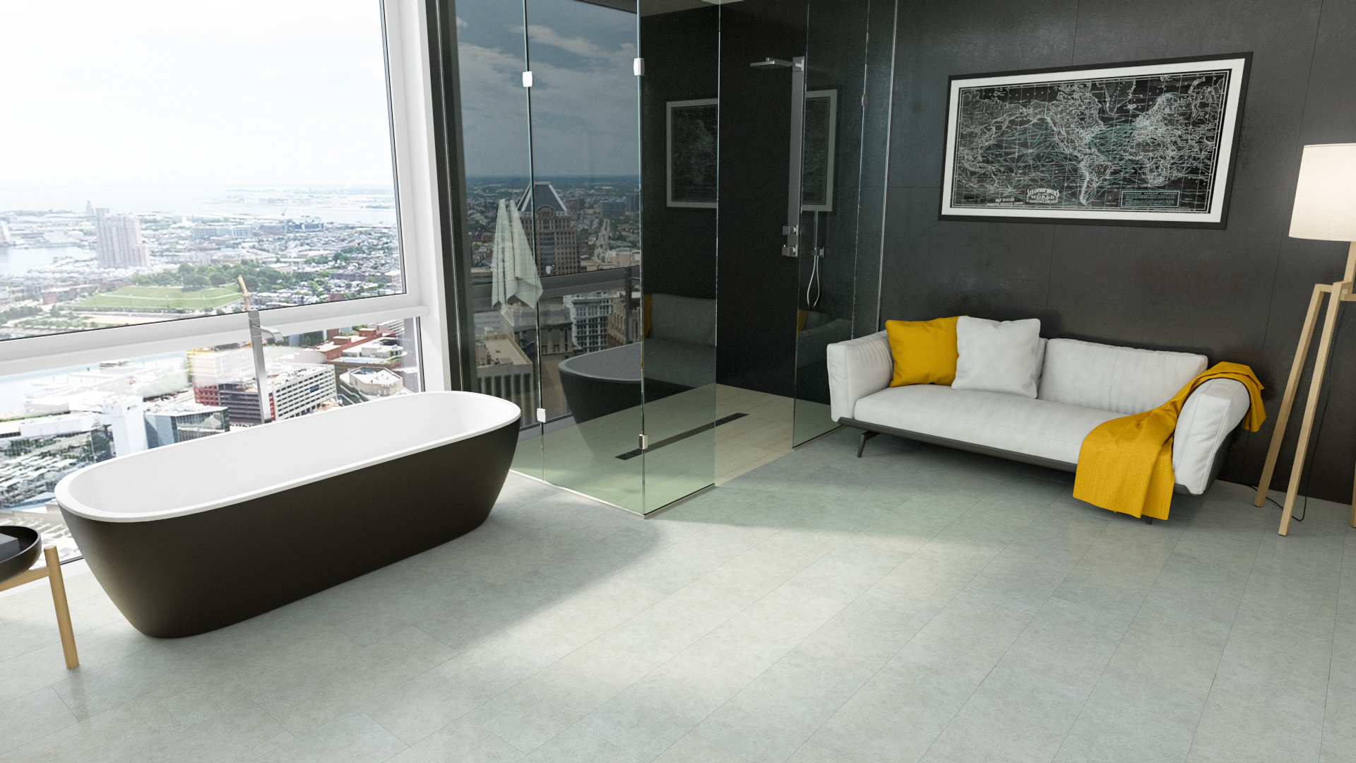3. Судя по описанию кварцевый ламинат можно было положить и в сан узел, но т. к. керамогранит на пол я купил ещё до выдачи ключей, то я не захотел дополнительно заморачиваться.