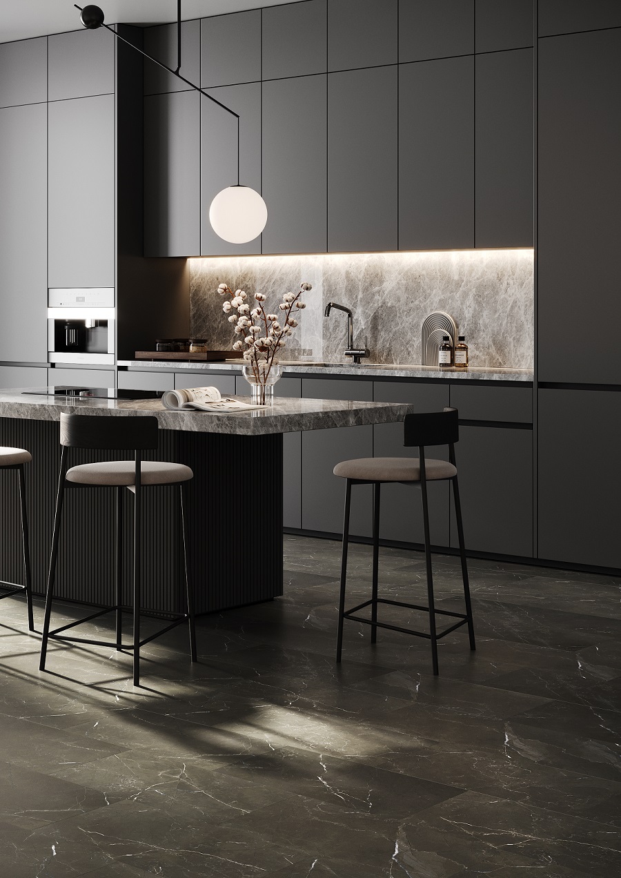 Сначала я думал об обычной плитке, однако в процессе подумал о кварцевом ламинате. Заказать решил в компании Fargo, так как много хорошего о них слышал да и бренд известен на всю Россию. Выбрал Fargo Comfort. Хочу сказать, что совсем не разочарован кварцевым ламинатом, укладывается он легко и быстро, по нему приятно ходить, а кухня визуально стала выглядеть еще лучше.
