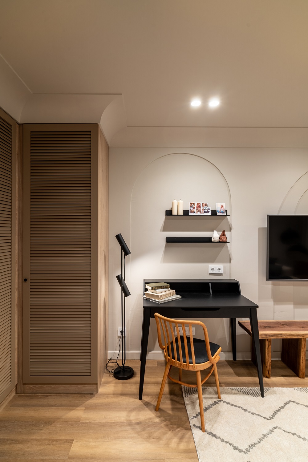 Кварцевый ламинат Fargo Comfort Дуб Мехико 70W921 легко вписывается в любой интерьер и обладает высокой износостойкостью, поэтому на полу уложили именно его.